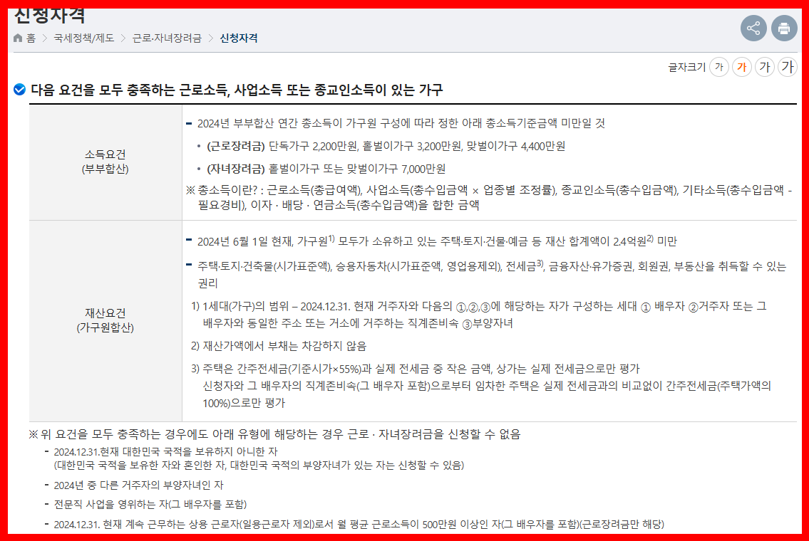 [2025 근로·자녀장려금 내용 총정리] 신청방법부터 대상·조건·지급일까지 내용 완벽 안내