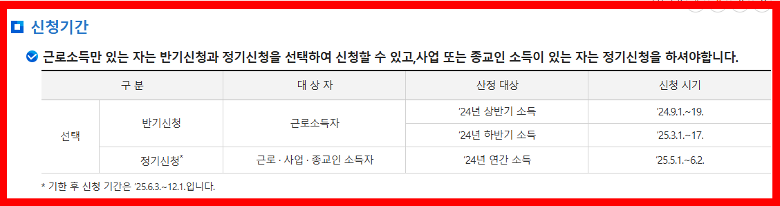 | 기한 후 신청 | 2025년 6월 3일 ~ 11월 30일 | 지급액의 10% 감액 발생 가능 |