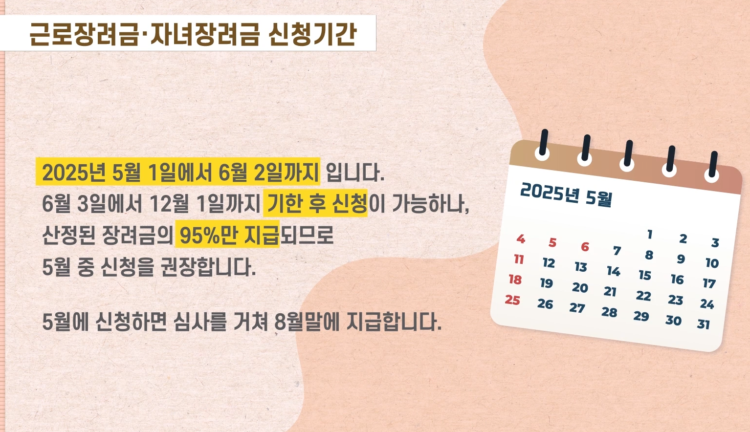 2025 근로·자녀장려금 내용과 신청방법 총정리! 신청기간, 대상, 금액, 조건, 지급일까지 지금 확인하세요. 2025 근로·자녀장려금 내용 놓치면 손해입니다.