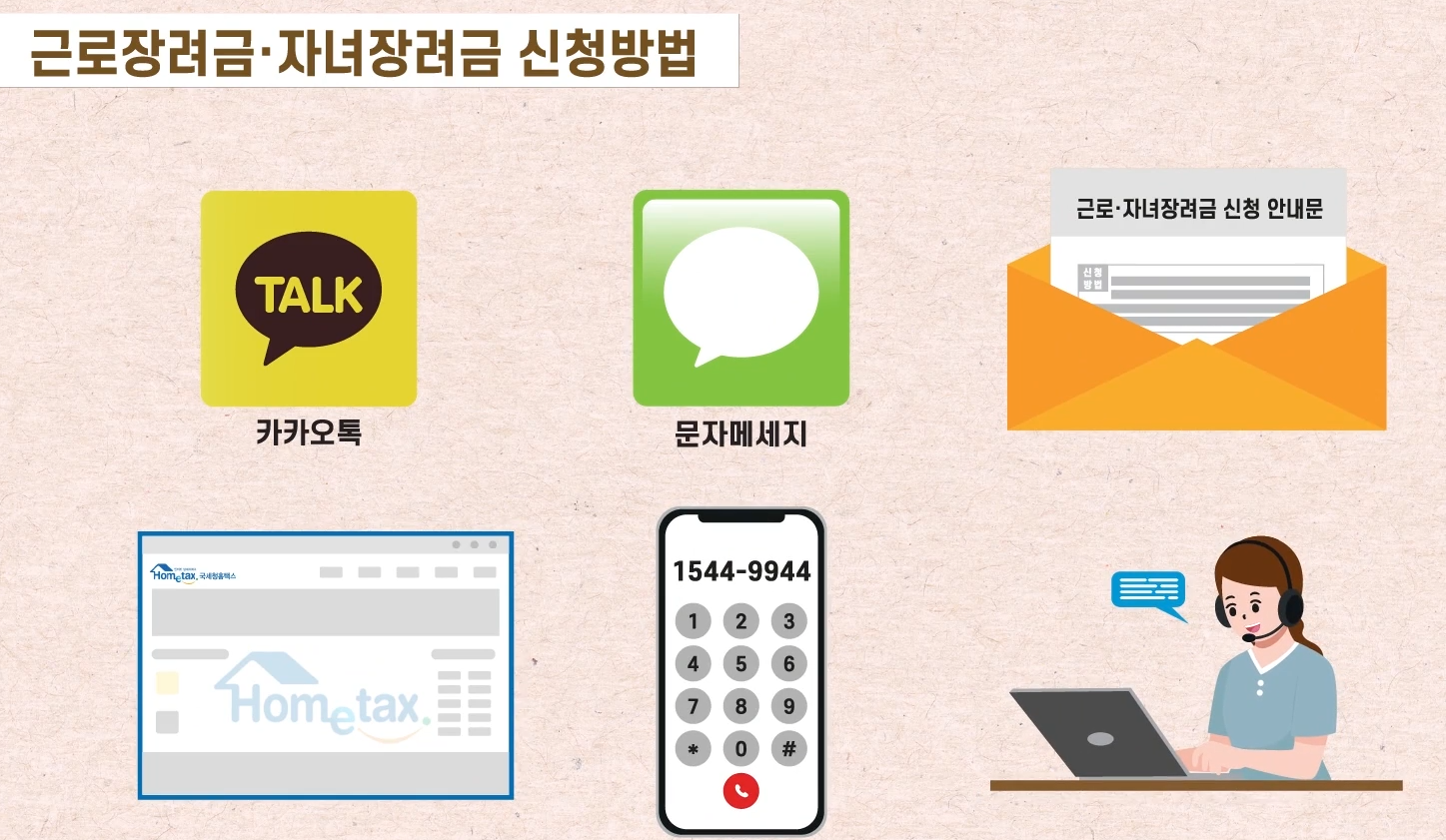 신청은 매우 간단합니다. 2025년 근로·자녀장려금 내용에 따라 4가지 방법 중 선택하면 됩니다.