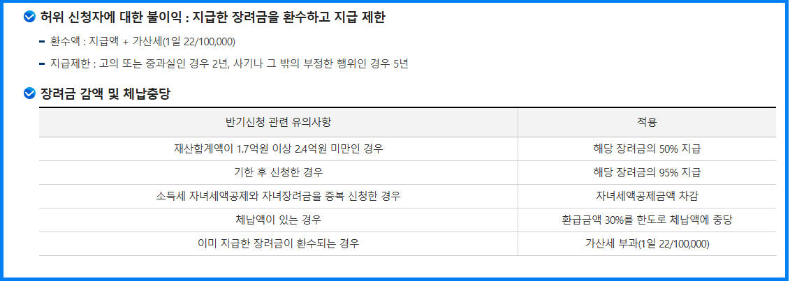 - 재산이 1억 4천만 원 이상이면 근로장려금이 감액 지급됨