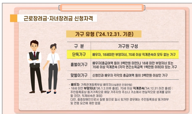 2025년 근로장려금 신청자격은 2024년 소득 및 재산 기준을 바탕으로 결정됩니다. 아래는 근로장려금 신청자격에 대한 상세 내용입니다.