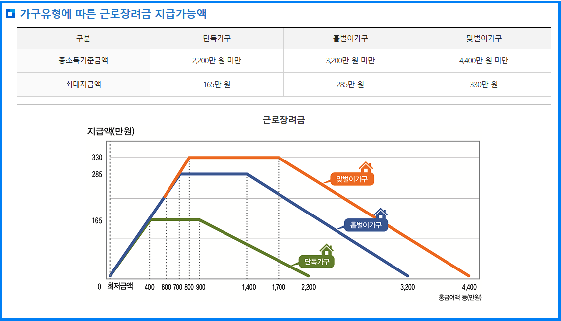 - 소득이 일정 구간에 걸쳐 있으면 근로장려금이 일부 감액될 수 있음
