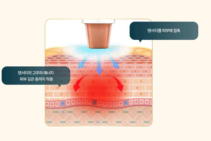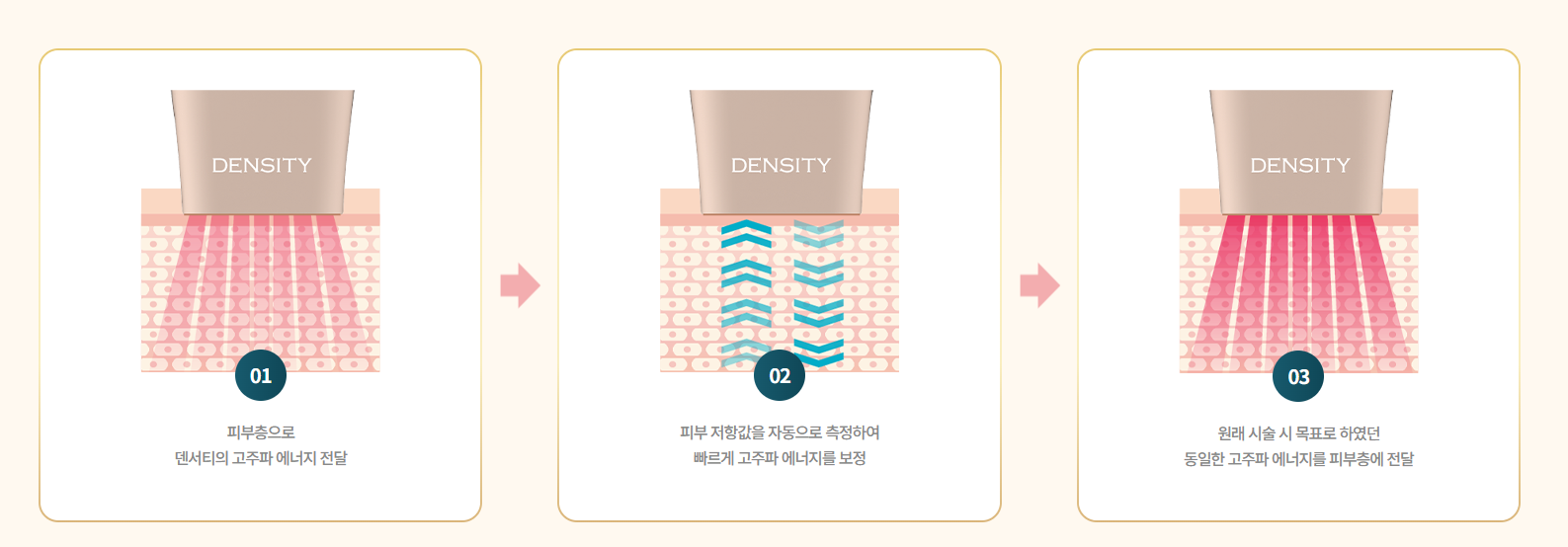 덴서티 고주파 시술은 고주파(RF) 에너지를 피부 진피층에 직접 전달해
