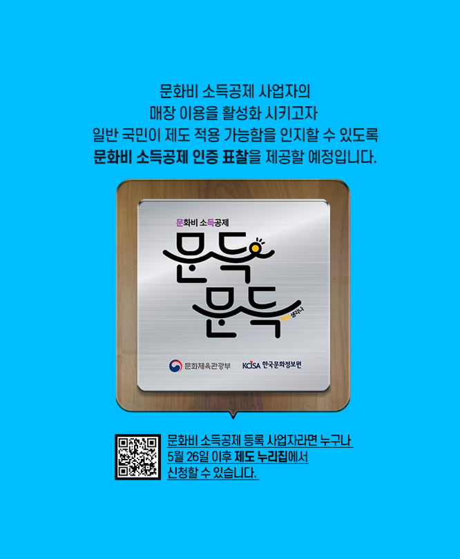 - 등록 시 ‘문화비 소득공제 가맹점 현판’ 제공