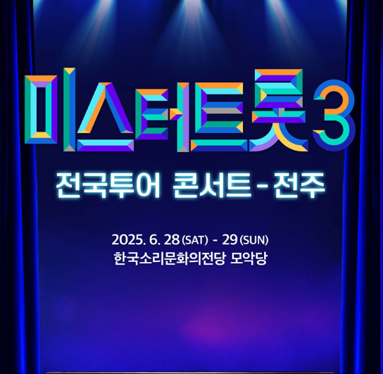 2025 미스터트롯3 전국투어 콘서트 일정은 트롯 팬이라면 절대 놓칠 수 없는 전국 투어입니다. 티켓팅 성공을 위해 미스터트롯3 전국투어 콘서트 일정을 꼼꼼히 확인하고, 공연장의 위치·교통·숙소까지 사전에 준비해보세요.