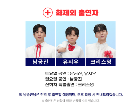 출연진 명단: 김용빈, 손빈아, 천록담, 최재명, 추혁진, 춘길 외