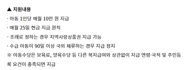 일부 인구감소지역에서는 아동수당 지급대상이 되면 최대 25만~30만원까지 지원받을 수 있게 됩니다.