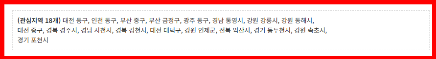 예: 대전 동구·중구·대덕구, 인천 동구, 부산 중구·금정구, 광주 동구, 강원 강릉시·동해시 등