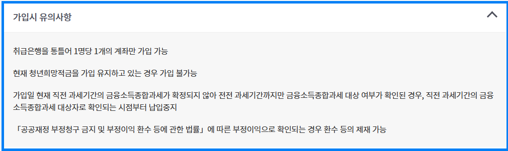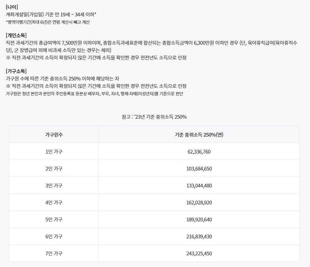 - 만 19세 이상 ~ 만 34세 이하 청년만 가입 가능