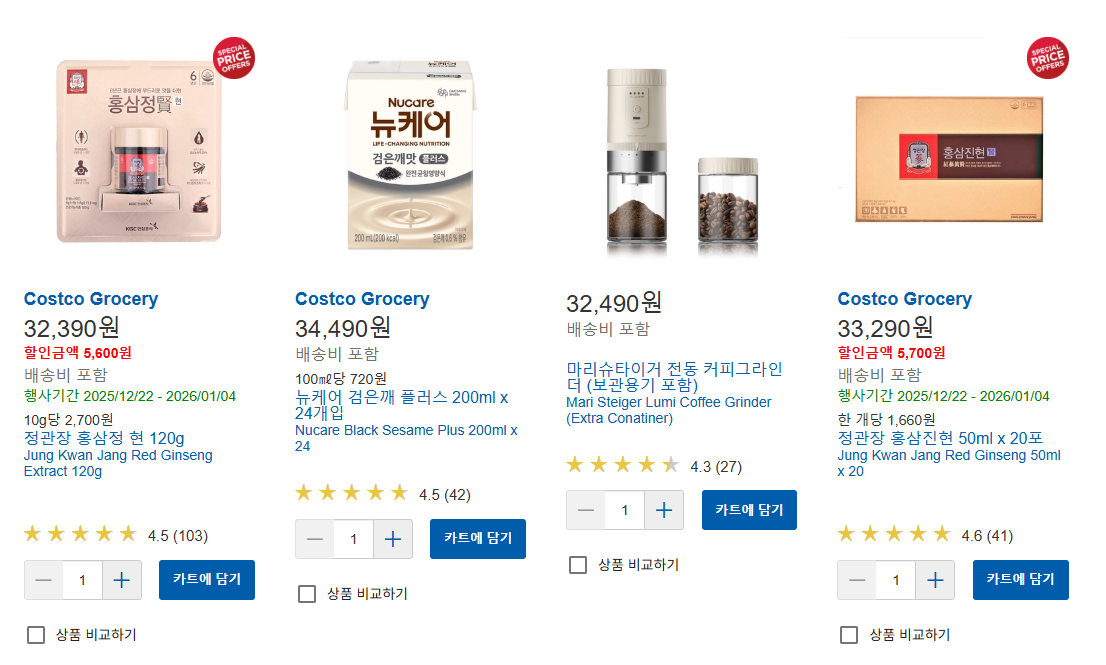현재 코스트코에서는 정관장 홍삼정 현이 최초할인으로 판매 중이다.