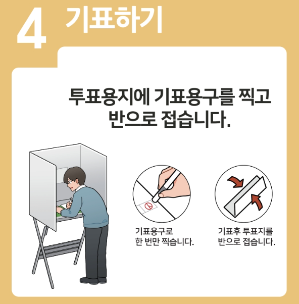 - 첫 투표 시 긴장 → 투표용지 접는법을 미리 연습해 둘 것