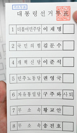 - 투표용지를 받자마자 펼쳐 내용을 확인합니다.