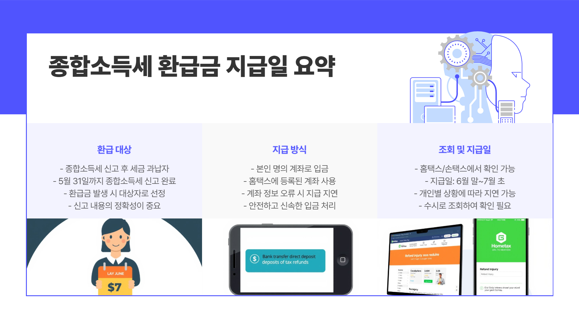 📌 종합소득세 환급금 지급일은 소득자에게 중요한 재정 일정입니다. 올해도 많은 분들이 종합소득세 환급금을 통해 여름 자금을 마련하고 있으며, 종합소득세 환급금 지급일은 계획의 기준이 됩니다.