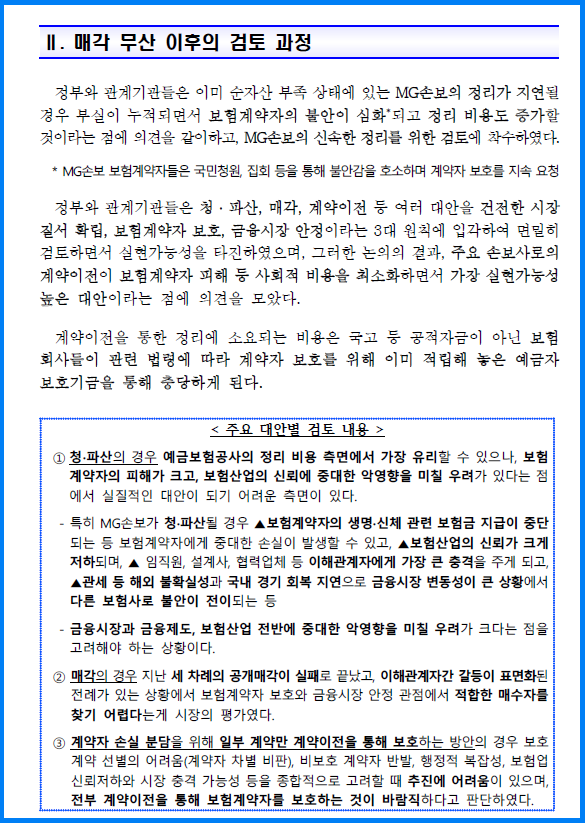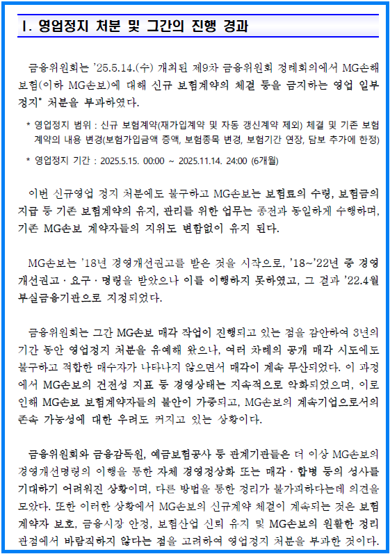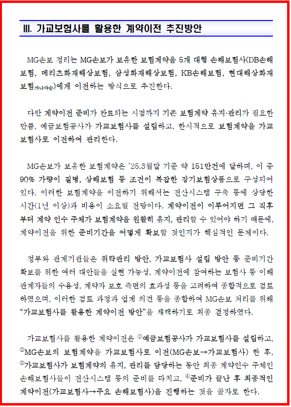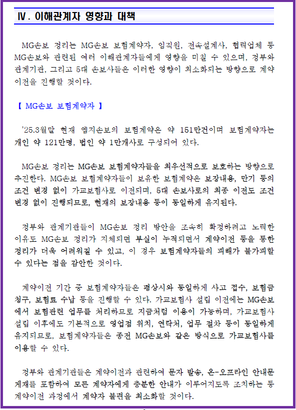 → MG손해보험 파산 관련 정책 변화 및 가입자 보호 대책 업데이트 확인: